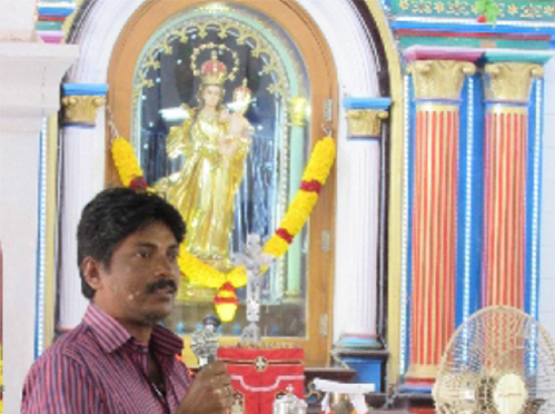A boy of 12 years of age fell seriously sick. His parents took him to many doctors and gave various treatments in Erode town. ( 80 K.M. from karumathampatti ) Finally they took him to a famous hospital in Coimbatore. After checking the boy the doctor said the boy was attacked by a serious sickness and it has reached the final stage and he would not be able to save his life. He added that he might die at anytime and asked the parents to take him back home. When the parents were taking the boy back home to their city Erode, on the way they visited the shrine of Our Lady of Rosary since they knew that lots of miracles took place in that shrine. They placed the boy in front of the statue of Our Lady of Rosary and said "Either save the boy or you take him yourself. We will not take the boy home". As they were praying, the limbs of the boy moved and after sometime he got up and asked for food. When food was given he became alright and started walking. They thanked Our Lady of Rosary and took the boy home. This same boy, after 45 years, came to the shrine and bore witness to the public. He is a living witness today